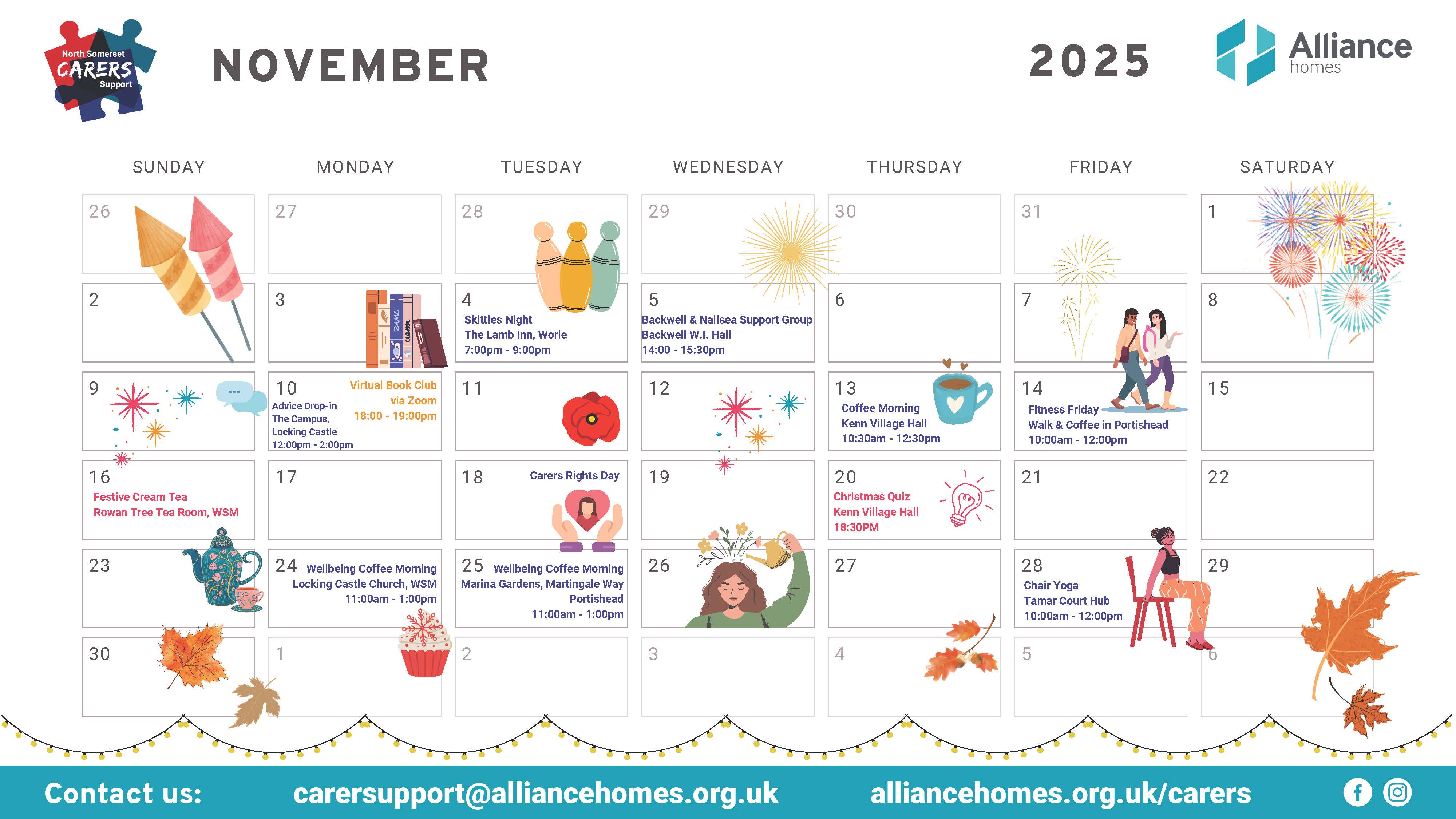 Some events require booking. If you're already registered with our service and would like to attend, please email: carersupport@alliancehomes.org.uk. If you're not currently registered, you're still welcome to come along, but we encourage you to complete a referral form so a member of our team can get in touch and help you access our services.
