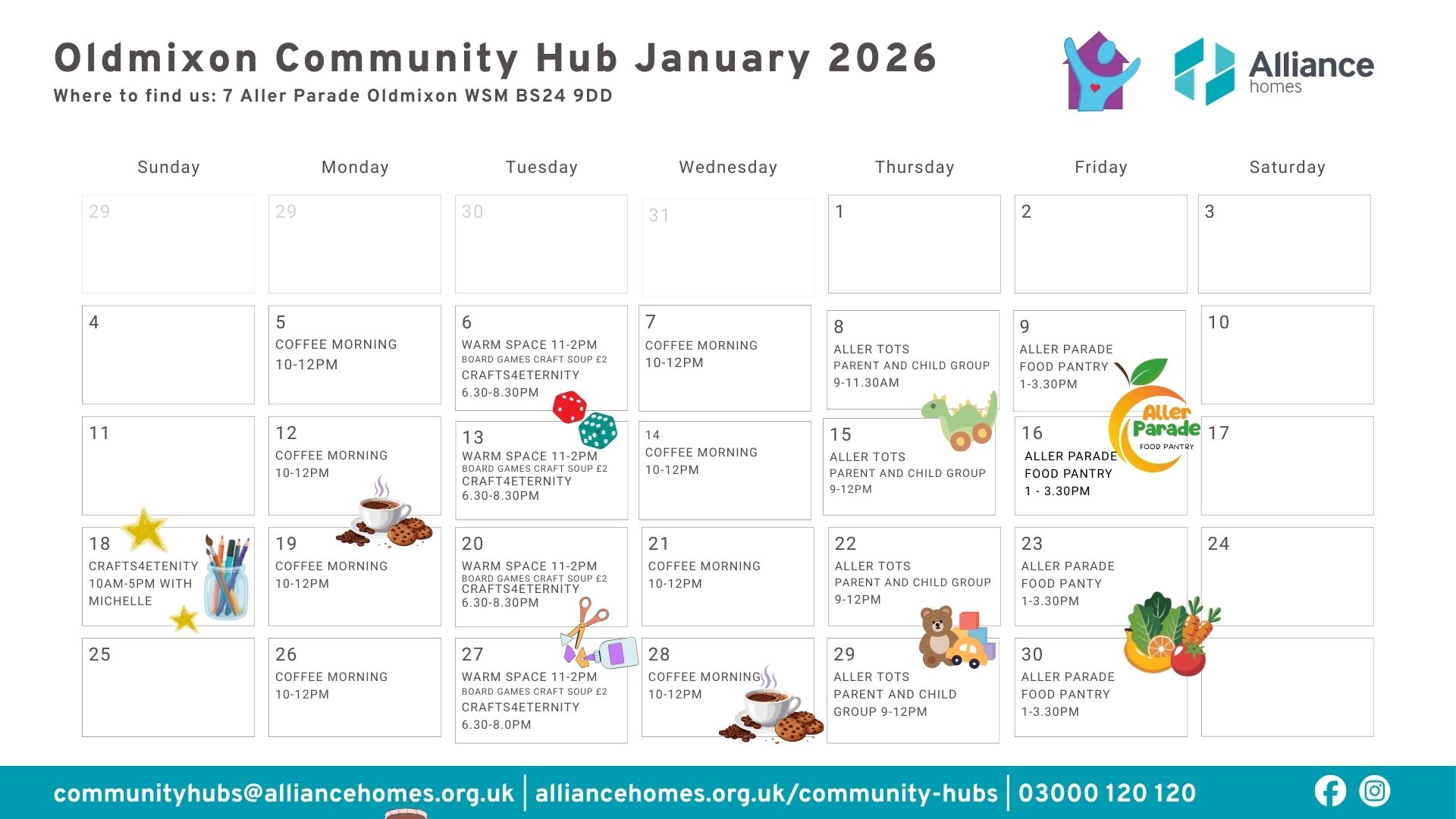 Our Community Hubs are located in Weston-super-Mare, and are available to our customers and communities. These are multi-purpose spaces for a range of voluntary groups and community activities. Each Community Hub is community-led and is a space for local residents to come together, socialise, meet new people, stay warm, and enjoy some food and refreshments.